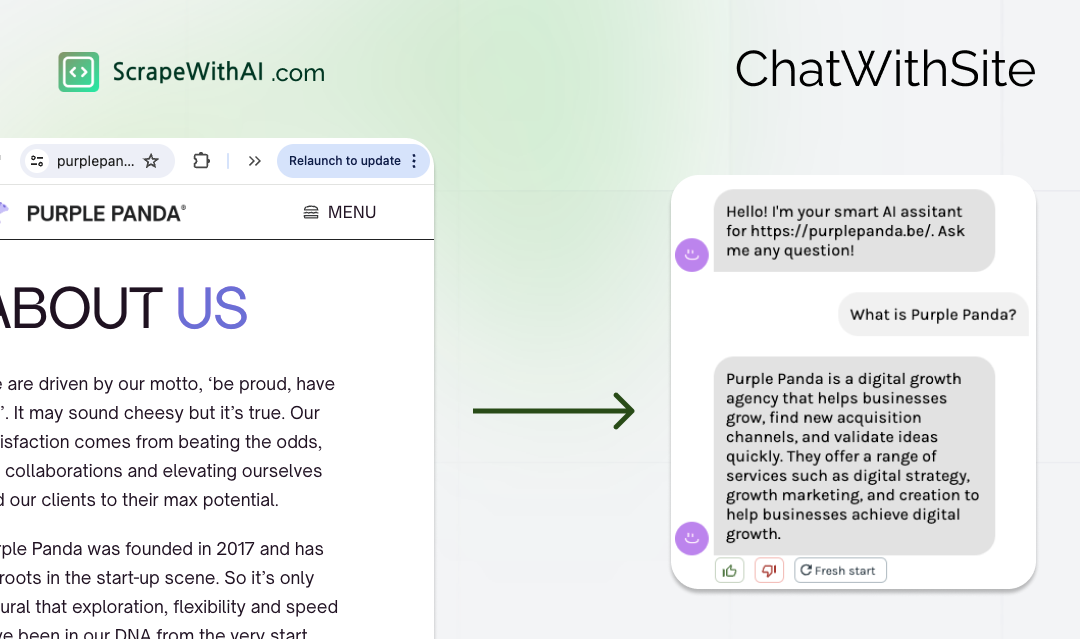 Just input a website URL, scrape it and instantly create a custom GPT trained assistant to chat with it